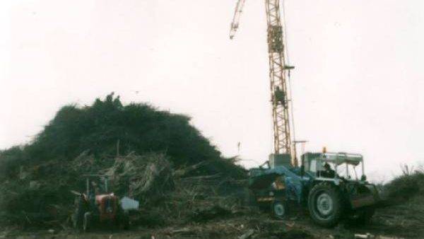 Het paasvuur werd net zoals het vorige jaar opgebouwd met een lepelkraan. Het bestond uit vele soorten hout(afval), maar ook uit flinke aantallen trekkerbanden. Het aansteken van het paasvuur gebeurd al jaren door vele balen stro onder in de houtstapel te stouwen en dit aan te steken. Het stro wat hiervoor gebruikt wordt is ons nog altijd gratis aangeboden.
