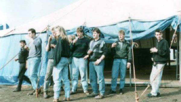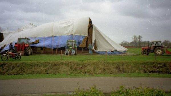 Vlak voor de voor de paasdagen in 1994 kregen we te maken met een zware storm. Op witte donderdag hadden we de tent opgebouwd. Op goede vrijdag moest er echter groot materiaal aan te pas komen om er voor te zorgen dat de hele tent ons niet weg woei. Helaas kwam de tent er niet zonder kleerscheuren vanaf.